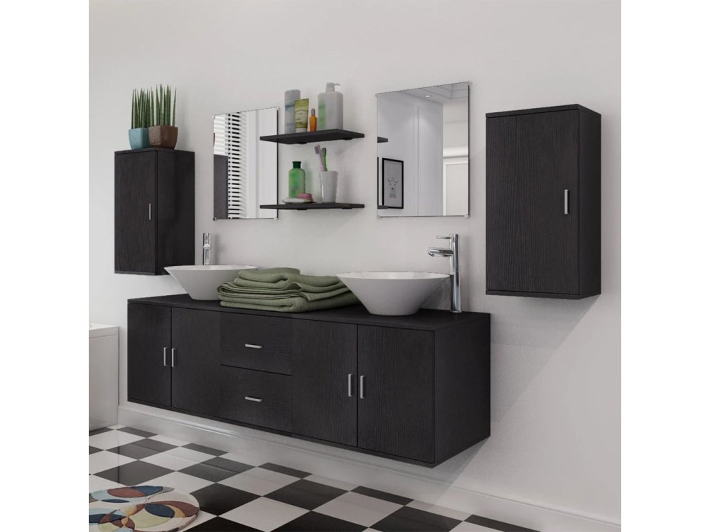 11dílný set koupelnového nábytku s umyvadlem a baterií černý