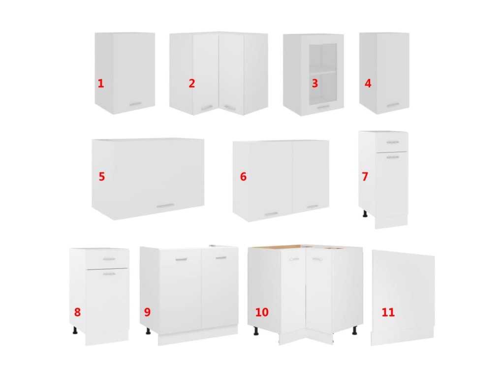 11dílná sada kuchyňských skříněk "Lyon" bílá, dřevěné