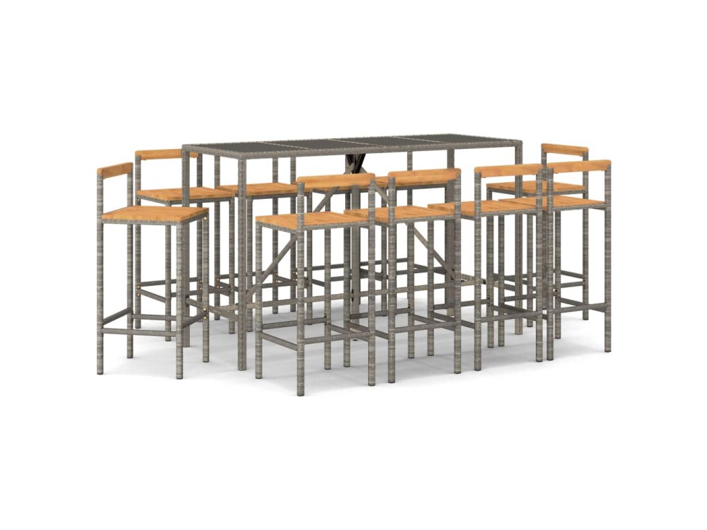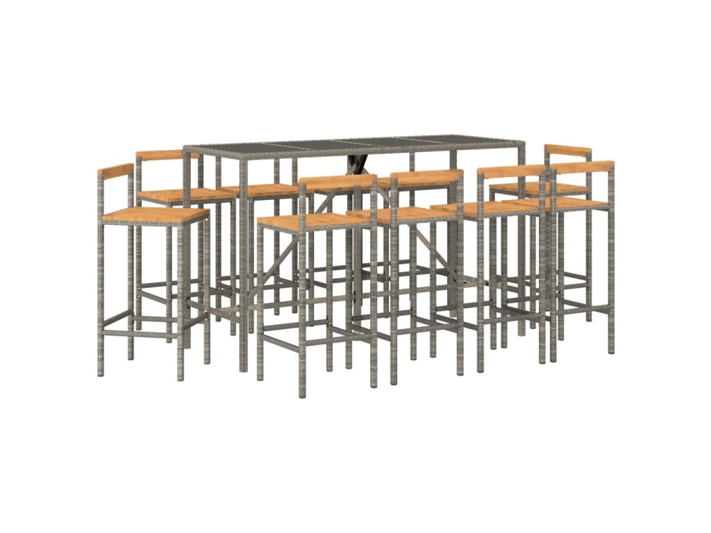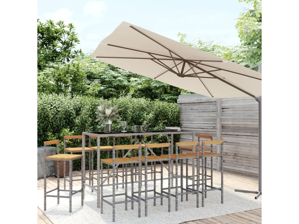 11dílný zahradní barový set šedý polyratan a masivní akácie