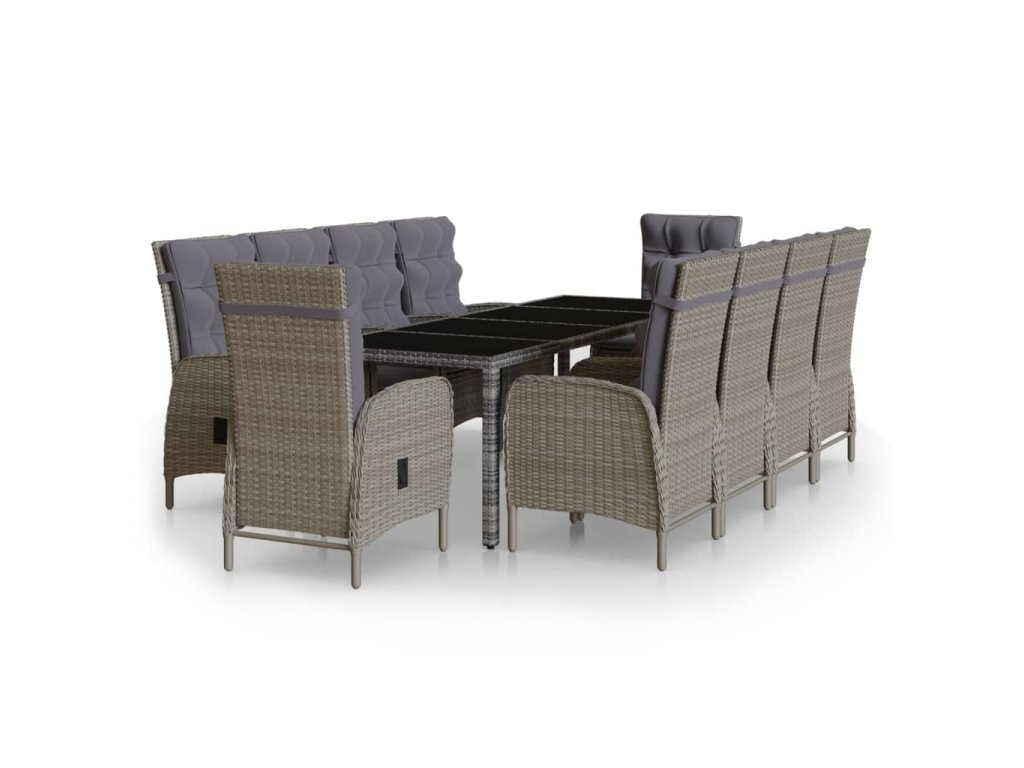 11dílný zahradní jídelní set polyratan šedý