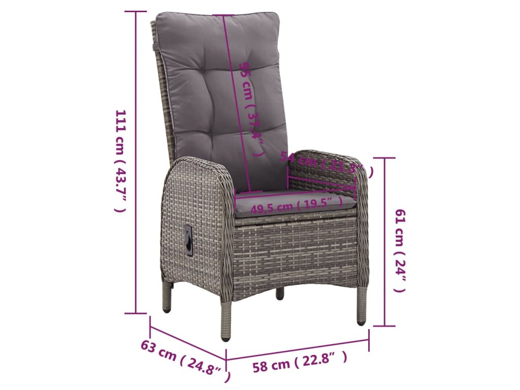 - Pohodlné židle: Zahradní polohovací židle má zaoblené opěradlo a područky, a tím pádem i ergonomičtější tvar pro maximální pohodlí. Součástí balení jsou také podušky pro příjemnější sezení. Potah na zip lze stáhnout a jednoduše vyprat.