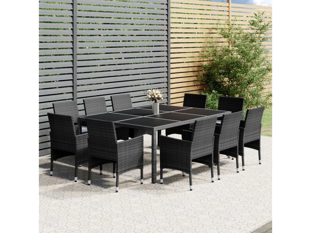 11dílný zahradní jídelní set polyratan šedý