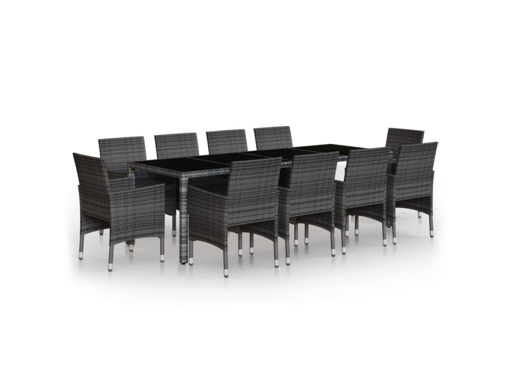 11dílný zahradní jídelní set polyratan šedý