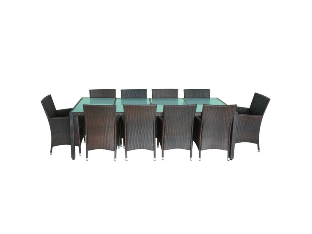 Balení obsahuje 1stůl, 10 židlí a 10 podušek na sedáky. Poznámka: Doporučujeme soupravu za deště, sněhu a mrazu přikrýt.