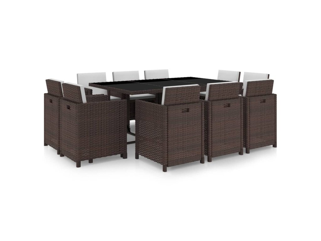 11dílný zahradní jídelní set s poduškami polyratan hnědý
