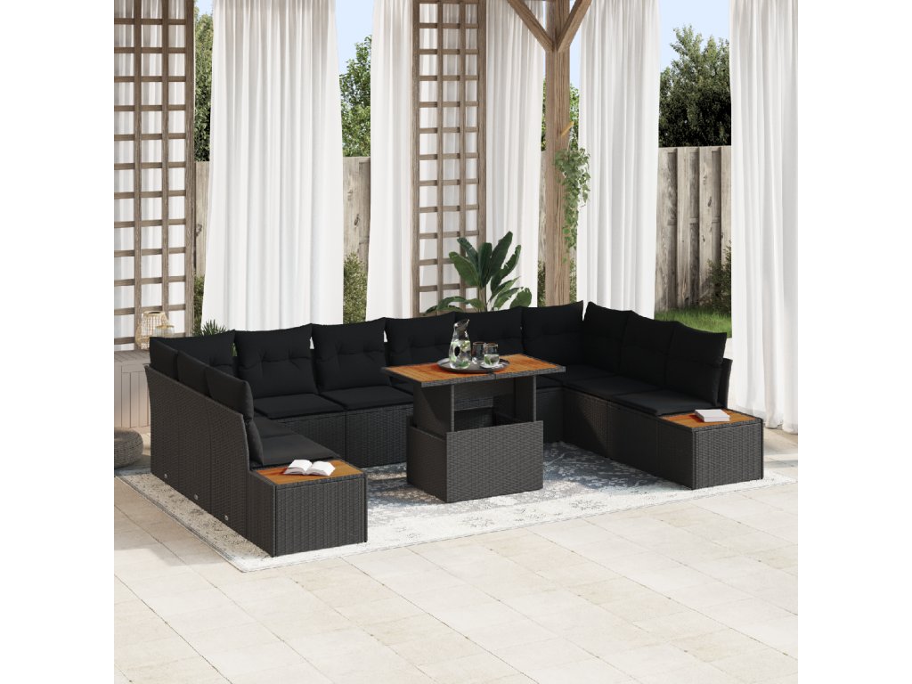 Zahradní jídelní souprava s polštářem 11 pcs Černá a hnědá