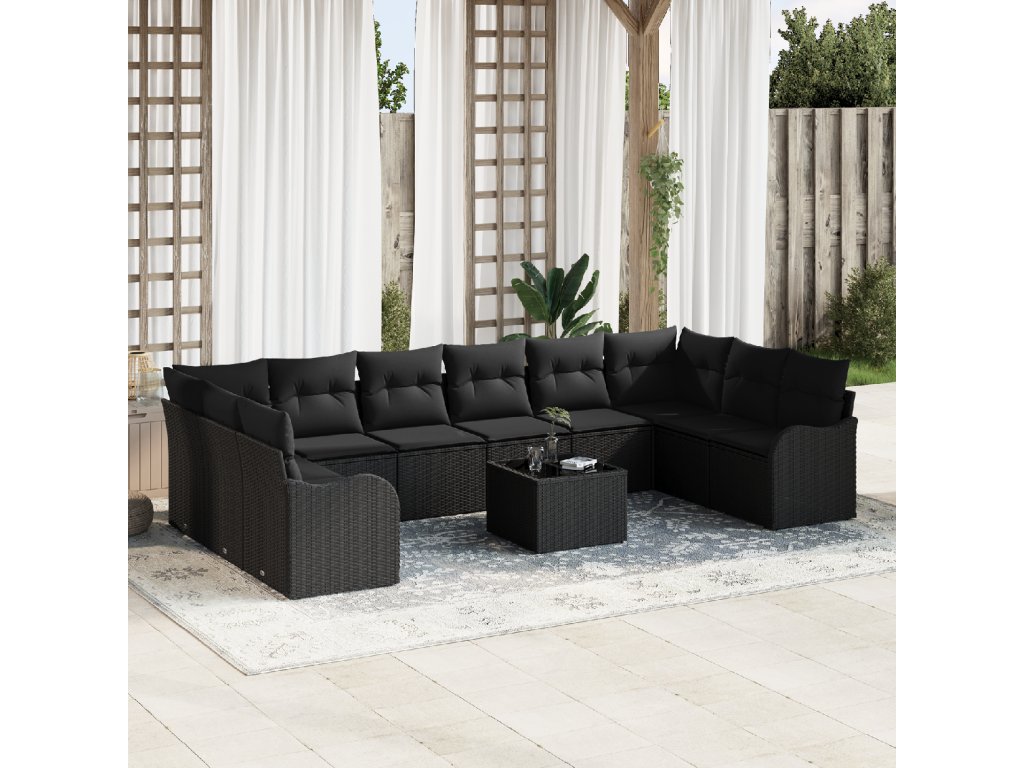 Sada zahradních pohovek s úložištěm 11 pcs Černá polyratan
