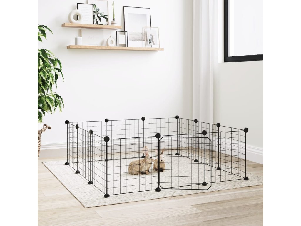 12dílná klec pro domácí mazlíčky s dvířky černá 35 x 35 cm ocelová