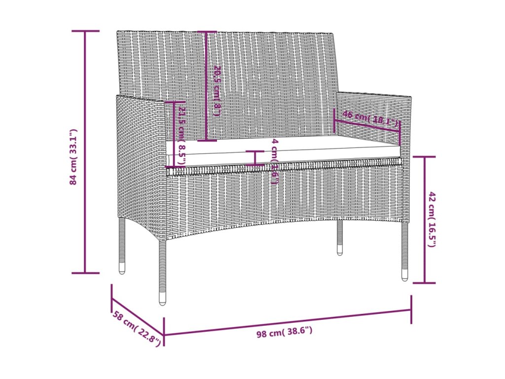 - Rozměry 2místné pohovky: 98 x 58 x 84 cm (Š x H x V)