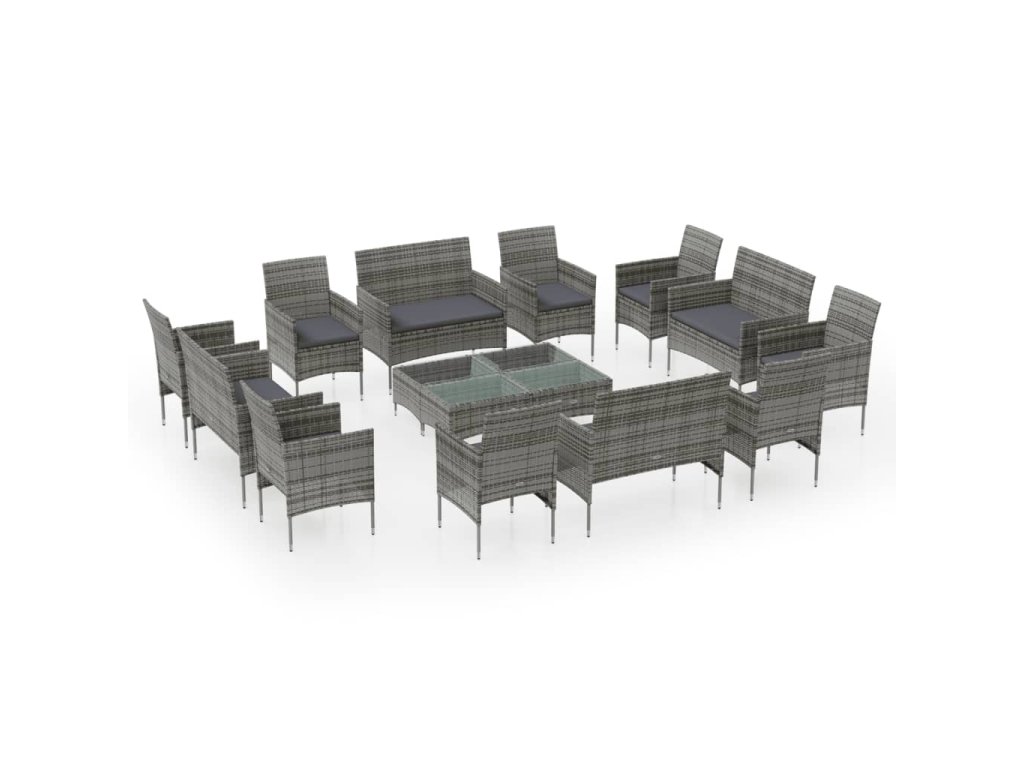16dílná zahradní sedací souprava s poduškami polyratan šedá