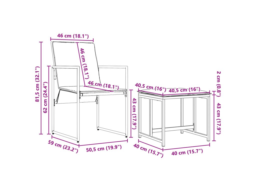 Odolné materiály: Pevná ocel dělá tento set stabilním a spolehlivým na dlouhou dobu, odolává rzi a poškození pro skvělý venkovní zážitek. Praktický design: Moderní vzhled se hodí do každého venkovního interiéru a přidává eleganci tvé zahradě nebo terase. Snadná montáž: Sestavení není žádná věda, takže ti ušetří čas a nervy. Odolnost vůči počasí: Tento jídelní set je navržený na každé počasí, takže si zachovává svůj šarm i sílu i v drsných podmínkách díky voděodolným textilovým materiálům. Univerzální použití: Perfektní pro zahradní párty, terasy nebo balkony – tenhle set se hravě začlení do jakéhokoliv venkovního prostředí a zajistí pohodlný zážitek při jídle pro každého.- Barva: Černá