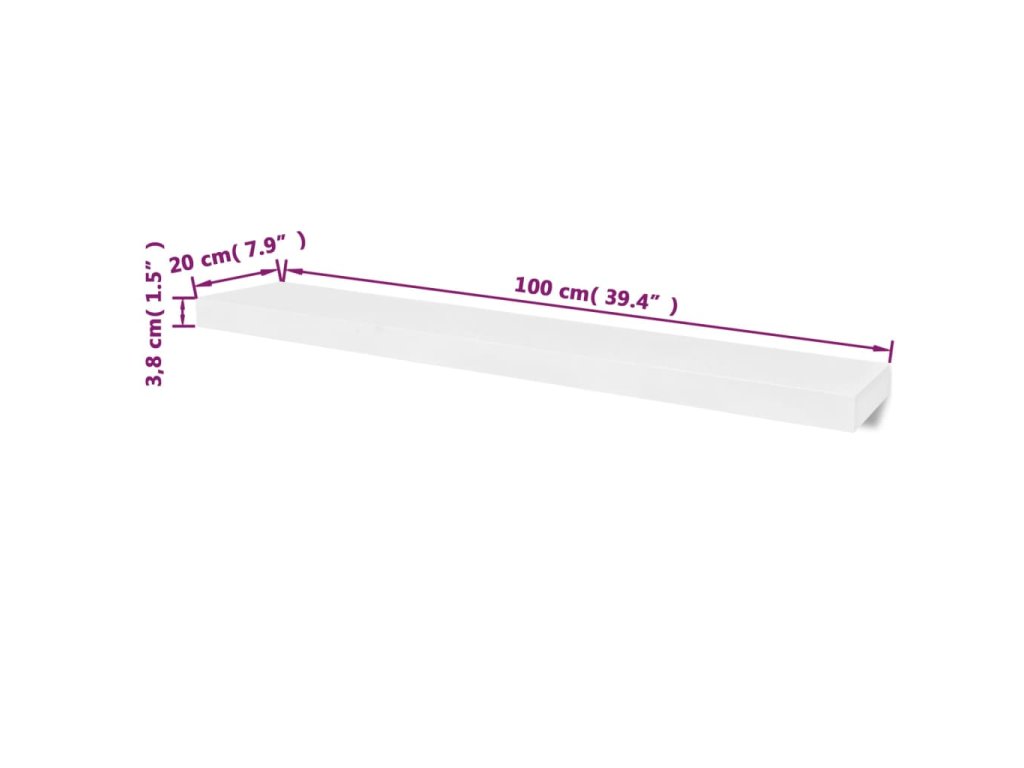 2 bílé nástěnné plovoucí MDF police na knihy a DVD