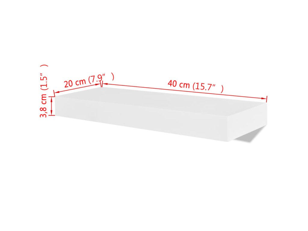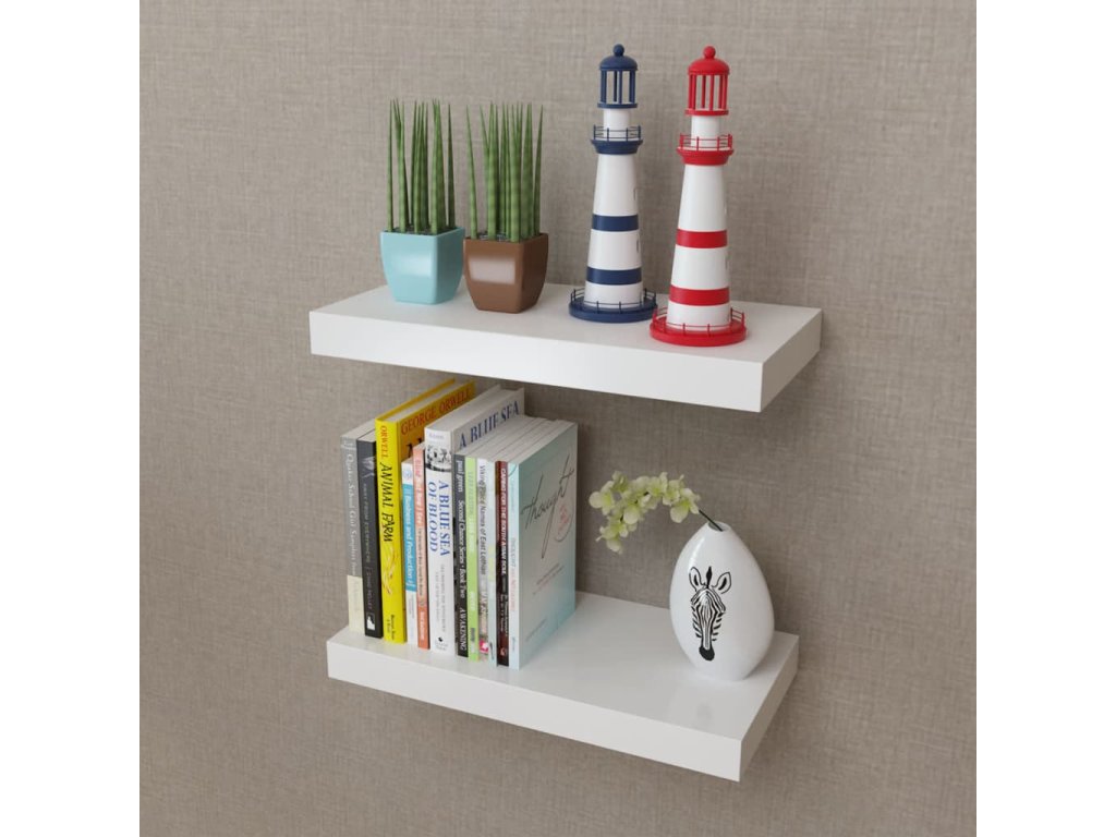 2 bílé nástěnné plovoucí MDF police na knihy a DVD