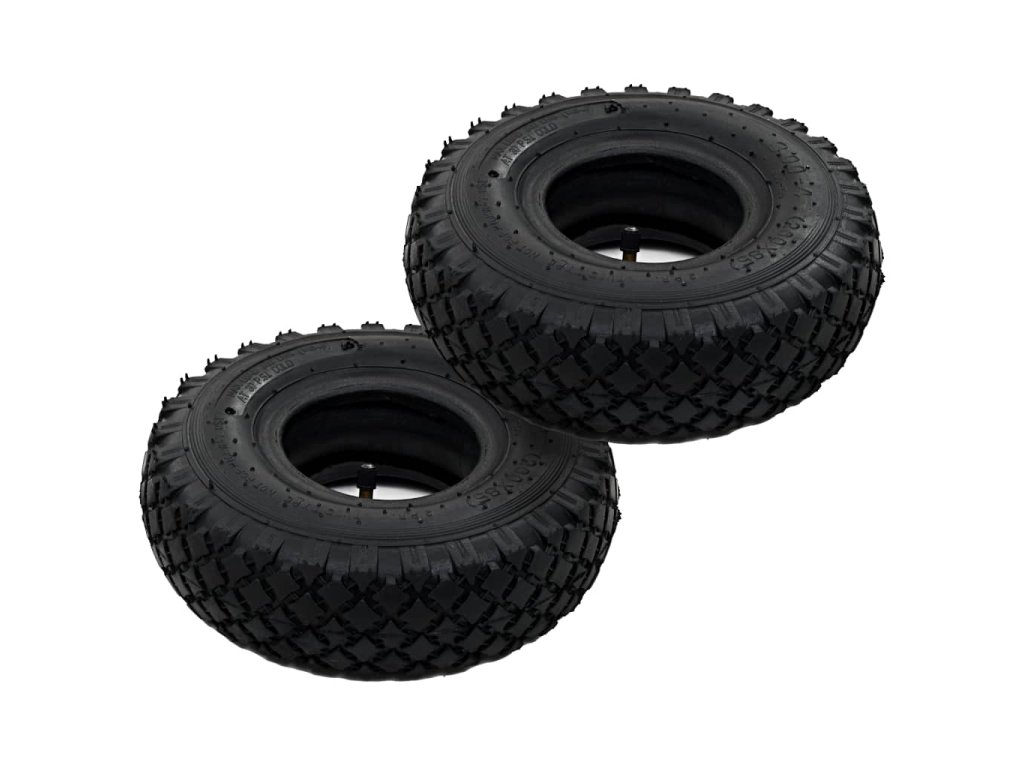 Pneumatiky a duše jsou vyrobeny z odolného, otěruvzdorného kaučuku. Pneumatiky mají speciálně designovaný vzorek, který zajišťuje lepší přilnavost při vyšších rychlostech. Duše pomáhají udržovat tlak vzduchu a zabraňují úniku vzduchu do pneumatik. Sada náhradních pneumatik a duší je ideální pro domácí, komerční a průmyslové použití, ale není vhodná pro použití na dálnicích.
