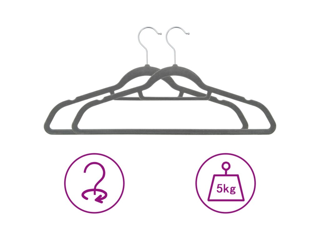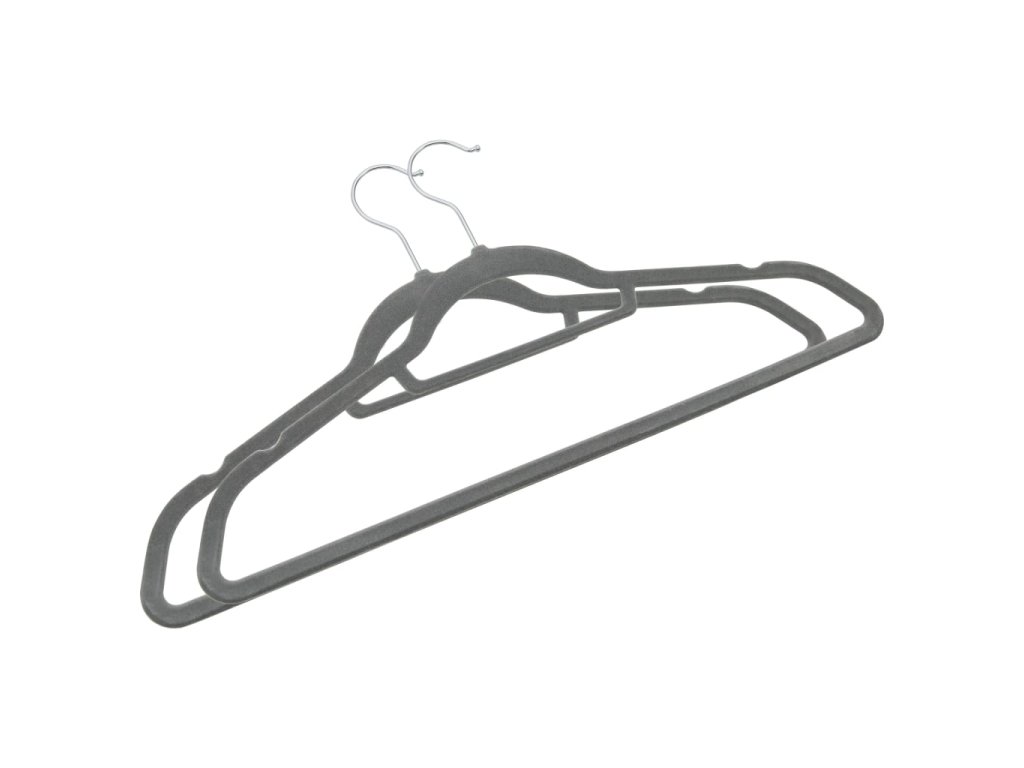 20 ks šatních ramínek protiskluzové šedé samet