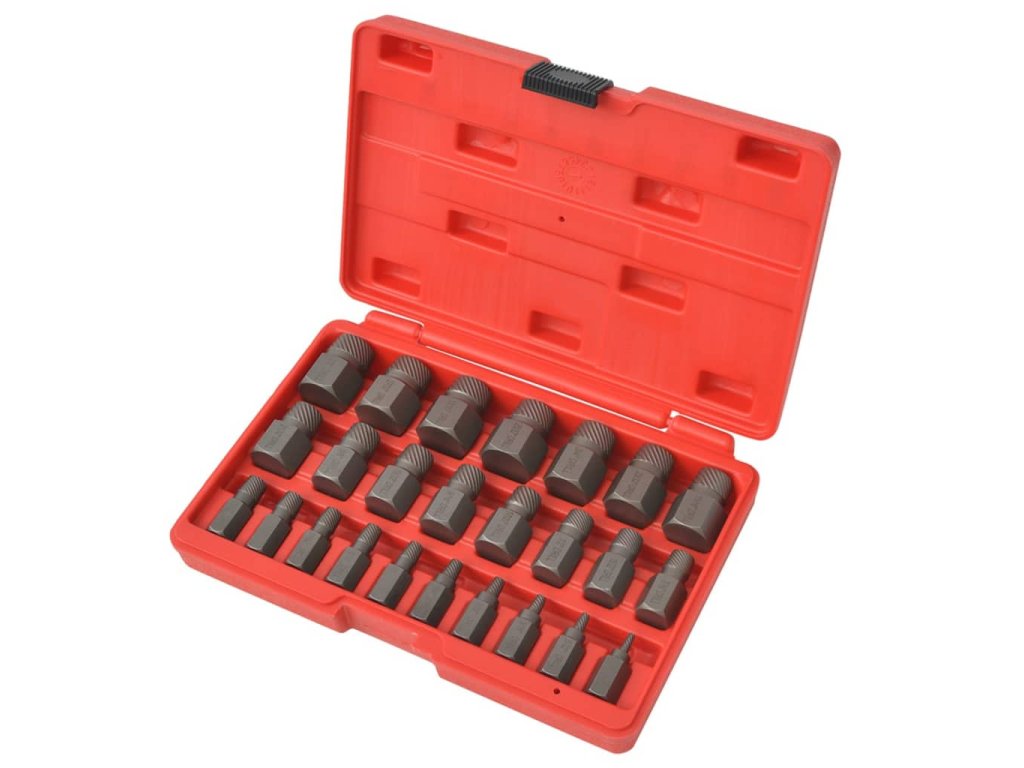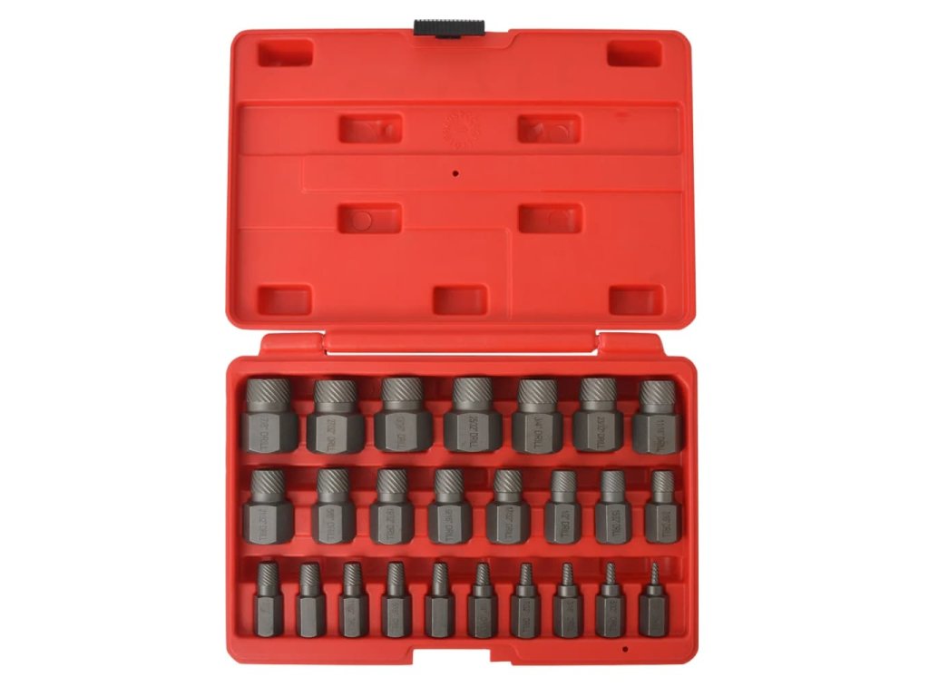 S touto 25dílnou sadou vytahováků šroubů snadno odstraníte poškozené cvoky, šrouby, mazací hlavice apod. Tato profesionální sada nářadí je vhodná jak pro komerční, tak pro příležitostné použití.