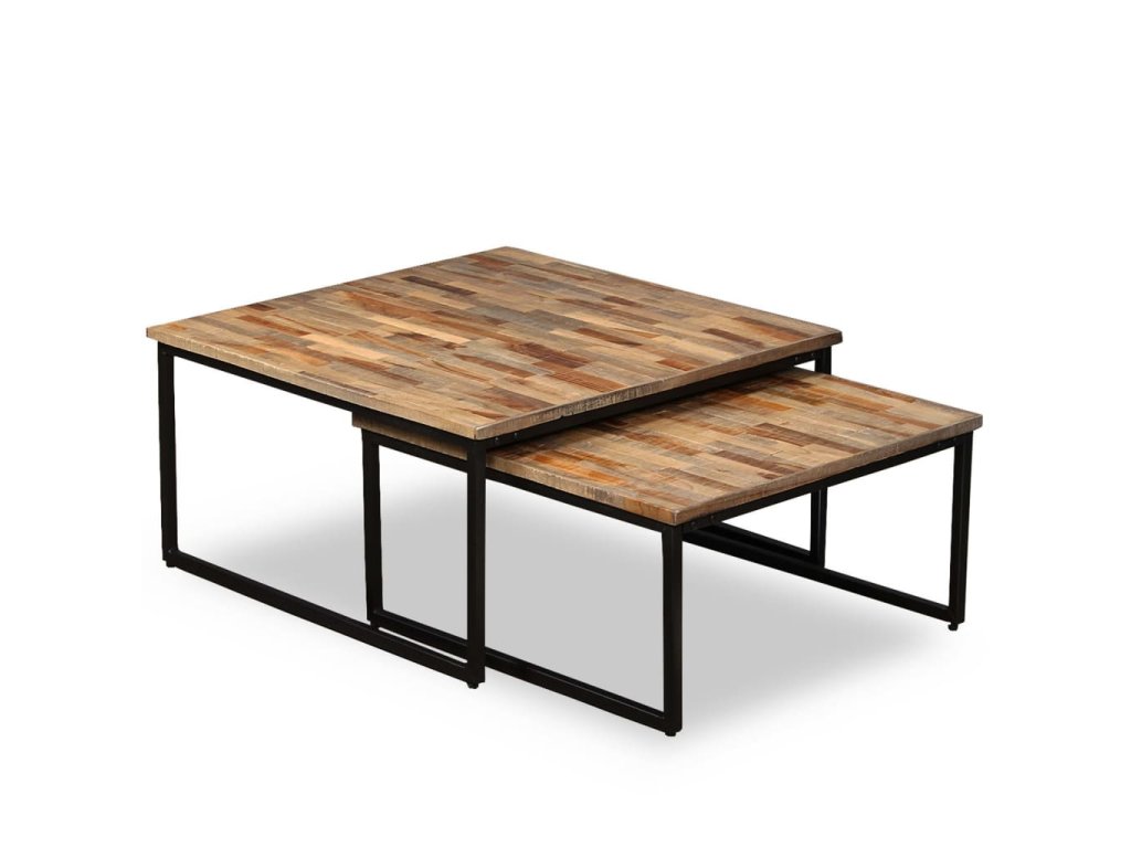 2dílná sada stohovatelných stolků, masivní recyklované dřevo