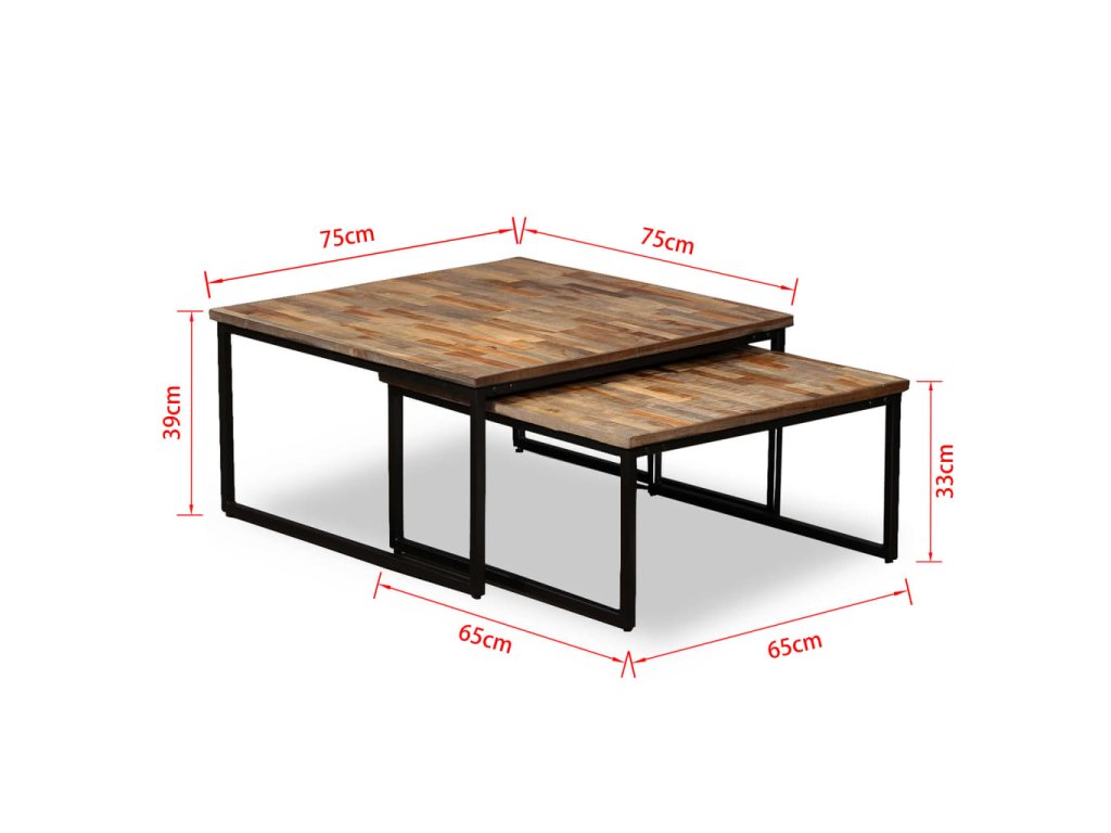 Tento stohovatelný konferenční stolek je vyroben z recyklovaného teaku, což znamená, že je každý kus nábytku jedinečný a lehce odlišný od ostatních. Recyklovaný teak je pevný, stabilní, odolný a překrásný. Silné ocelové nohy nejen zajišťují, že jsou tyto stohovatelné stolky velice bytelné a odolné, ale dodávají rovněž na jejich úchvatném industriálním vzhledu.