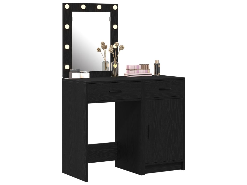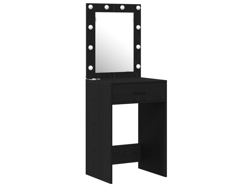 Tento moderní toaletní stolek je skvělým dodatkem pro každou ložnici, spojuje styl a praktické využití. Jeho obdélníkový tvar a čisté linie vystihují moderní design, ideální pro minimalistické nebo současné místnosti. Vyrobený z kompozitního dřeva, vypadá stylově a má spoustu úložného prostoru pro vaše nezbytnosti. LED světla nejsou jen pro parádu; usnadňují vaše ranní a večerní rutiny.