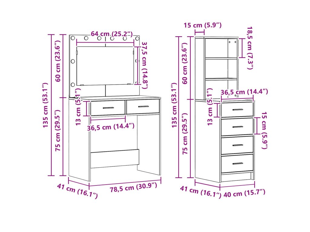 Kosmetický stůl Hnědá 78.5 x 41 x 135 cm Kompozitní dřevo