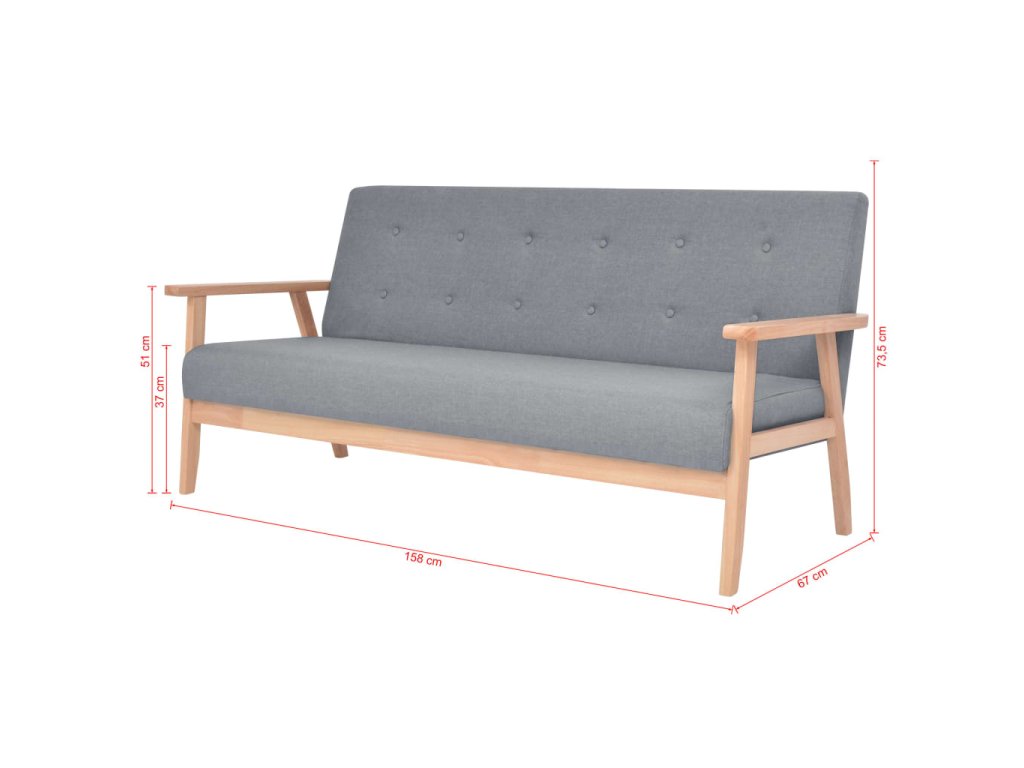 Čalounění soupravy je vyrobeno z měkkého polyesteru, který je vycpaný pohodlnou pěnou. Rám z dřevěného masivu je naopak stabilní a odolný. Její montáž je velmi snadná.