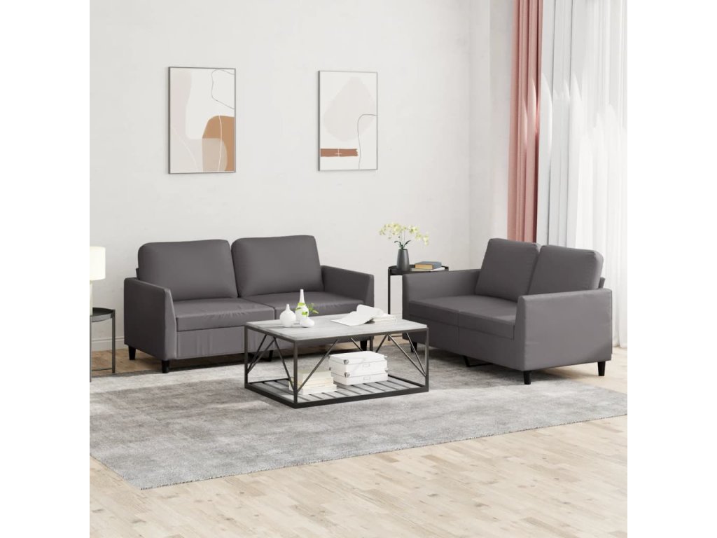 2dílná sedací souprava s poduškami šedá umělá kůže