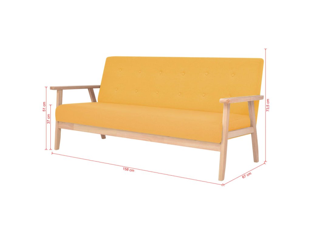 Čalounění soupravy je vyrobeno z měkkého polyesteru, který je vycpaný pohodlnou pěnou. Rám z dřevěného masivu je naopak stabilní a odolný. Její montáž je velmi snadná.