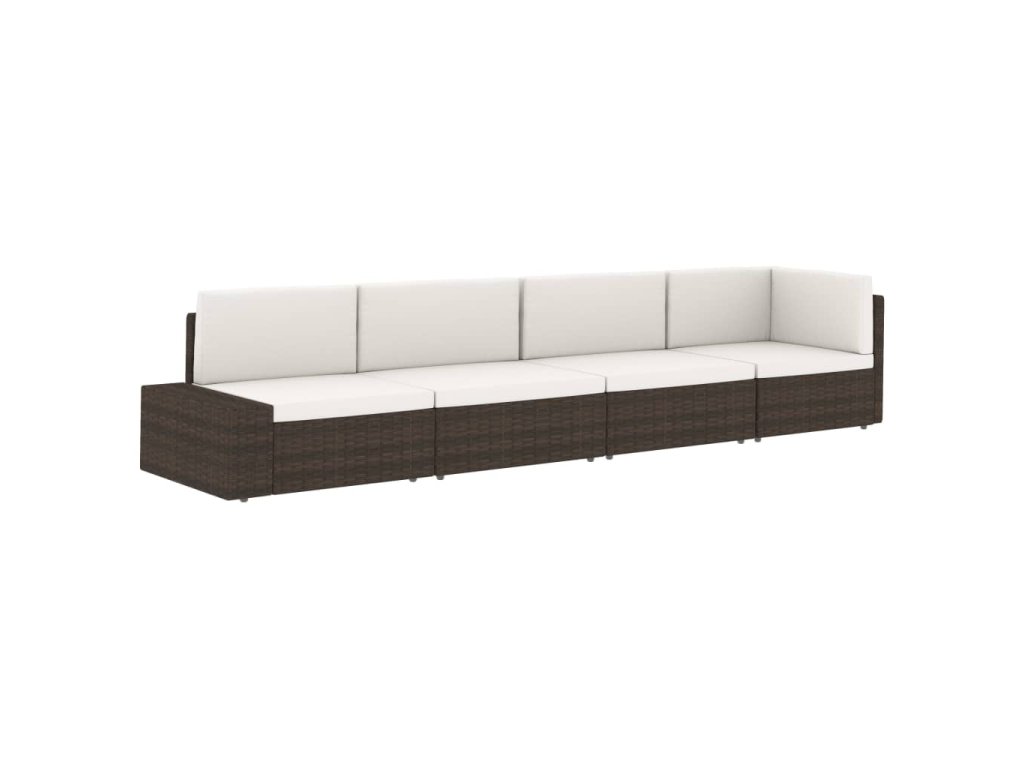 Souprava je vyrobená z PE ratanu, který výborně vzdoruje klimatickým vlivům, je odolný vůči opotřebení a vhodný pro každodenní používání. Navíc se snadno čistí. Všechny díly jsou zpevněné rámem z práškově lakované oceli, takže jsou mimořádně odolné. Mají také nízkou hmotnost a modulární design, což znamená, že jsou zcela flexibilní a lze je bez námahy přesouvat a přizpůsobovat každému prostředí. Tlusté odnímatelné podušky vám poskytnou maximální pohodlí. Na konferenční stolek s deskou z tvrzeného skla si můžete odkládat knížky, časopisy a čaj, budete je tedy mít při odpočinku vždy hezky po ruce. Soupravu je možné kombinovat s dalšími modulárními díly, které najdete v rozbalovacím menu. Můžete si tak vytvořit zahradní posezení podle vašich představ! V 9 posledních obrázcích najdete příklady možných kombinací.