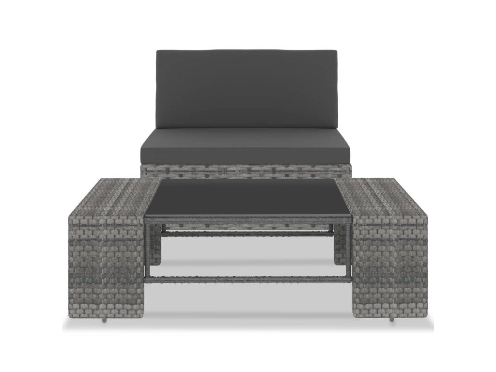- Materiál: PE ratan, textil (100% polyester), práškově lakovaná ocel, tvrzené sklo
