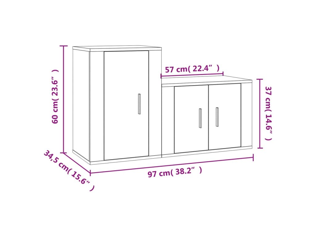 - 1x TV skříňka: 57 x 34,5 x 40 cm (Š x H x V)