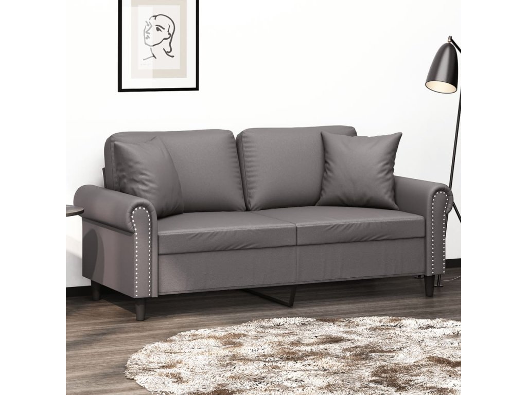 2místná pohovka s polštáři šedá 140 cm umělá kůže