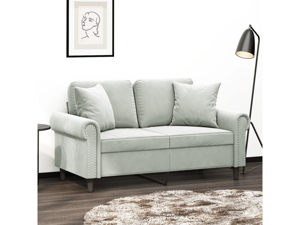 2místná pohovka s polštáři světle šedá 120 cm samet