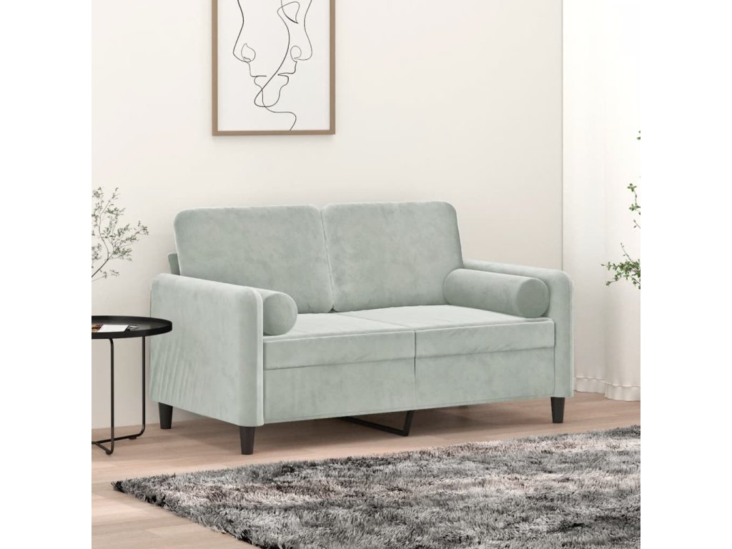 2místná pohovka s polštáři světle šedá 120 cm samet