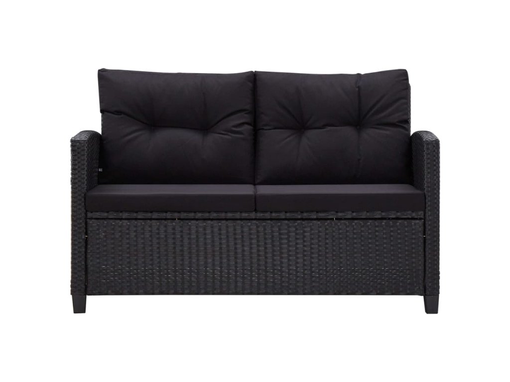 2místná zahradní pohovka s poduškami černá 124 cm polyratan