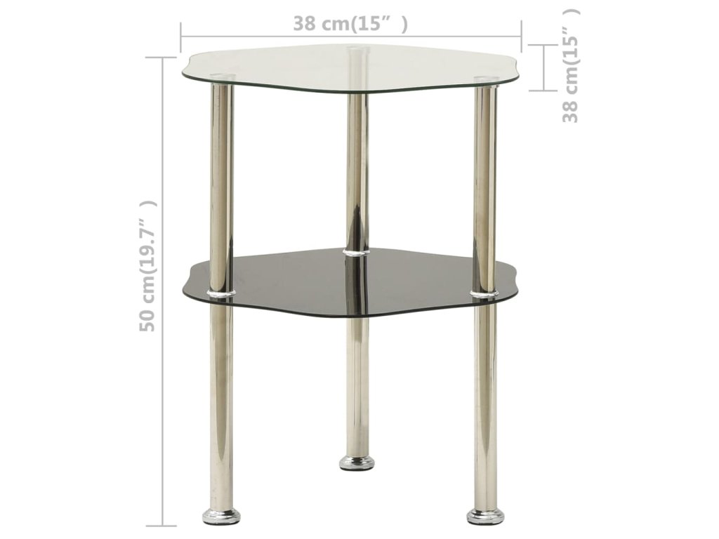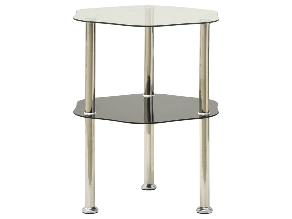 2patrový stolek průhledný a černý 38 x 38 x 50 cm tvrzené sklo