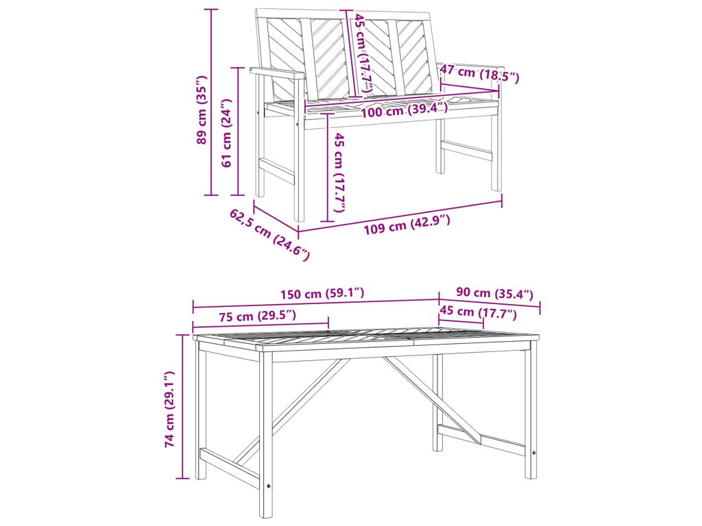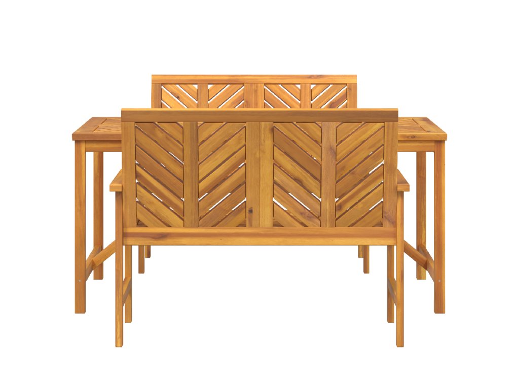 - Kvalitní materiály: Vyrobeno z masivního akáciového dřeva, tenhle set je pevný a vypadá skvěle. Akácie je známá svojí krásnou strukturou a zvládá různé venkovní podmínky, což ji dělá ideální pro každodenní používání. Tento materiál dodává rustikální nádech, ale je dostatečně odolný pro venkovní využití.