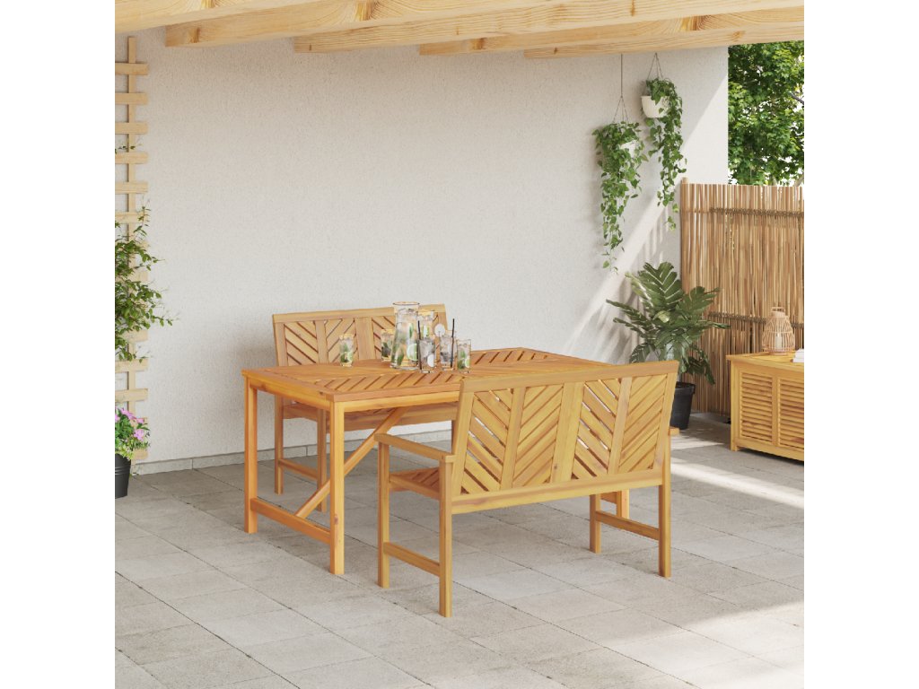 Zahradní jídelní set z akáciového dřeva nabízí skvělou kombinaci funkce a prvotřídního stylu pro tvůj venkovní život. S minimalistickým nádechem předvádí čisté linie a přírodní kouzlo masivního akáciového dřeva, který se perfektně hodí do různých zahradních prostředí. Je ideální pro malé, intimní večeře a vytváří pěkný středobod ve tvé zahradě nebo na terase – ideální pro relaxované večery nebo klidné chvíle.