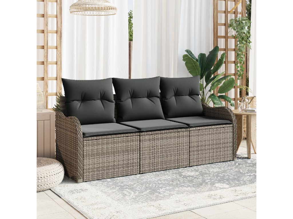 Sada zahradních pohovek s polštářem 3 pcs Šedá Poly ratan