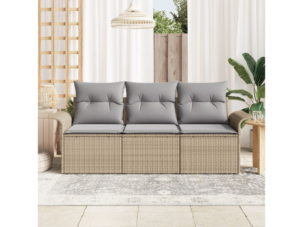 Set pohovek s polštářem 3 pcs Beige a šedá polyratan