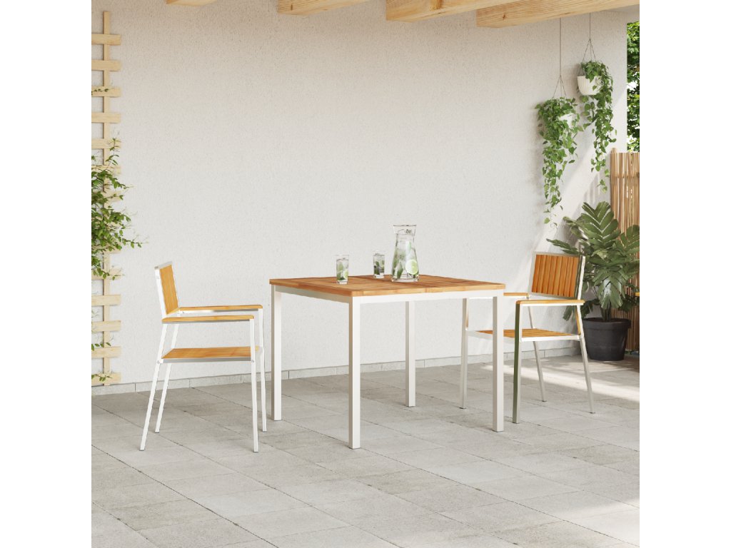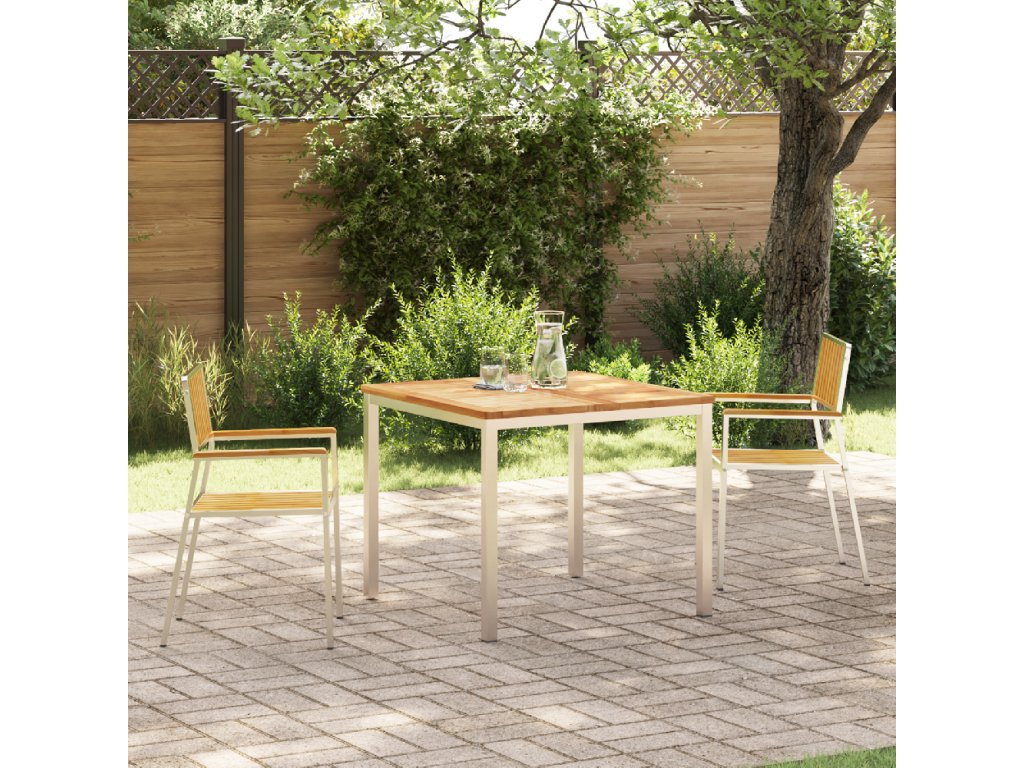 - Rám z nerezové oceli: Tento zahradní jídelní set má pevný rám z nerezové oceli, což zajišťuje stabilitu a odolnost venku. Materiál zvládá vlhké podmínky, takže je to váš spolehlivý parťák pro venkovní jídla. Nerezová ocel vypadá skvěle a zároveň je funkční a stylová.