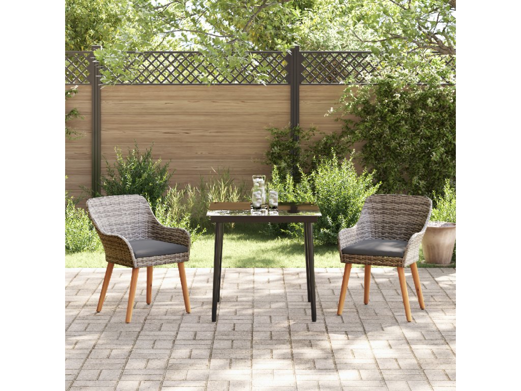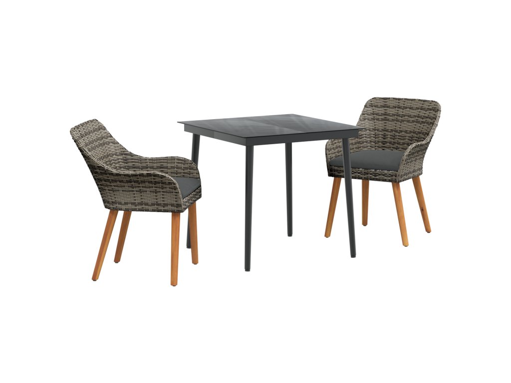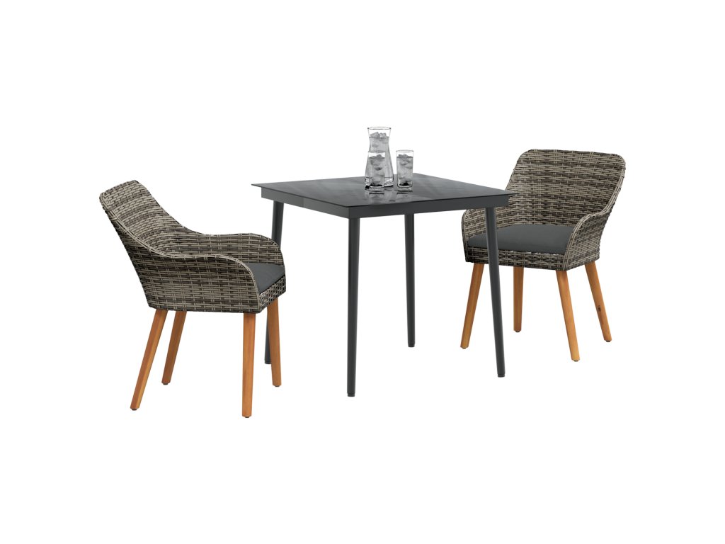 Zahradní jídelní souprava s polštářem 3 pcs Šedá polyratan