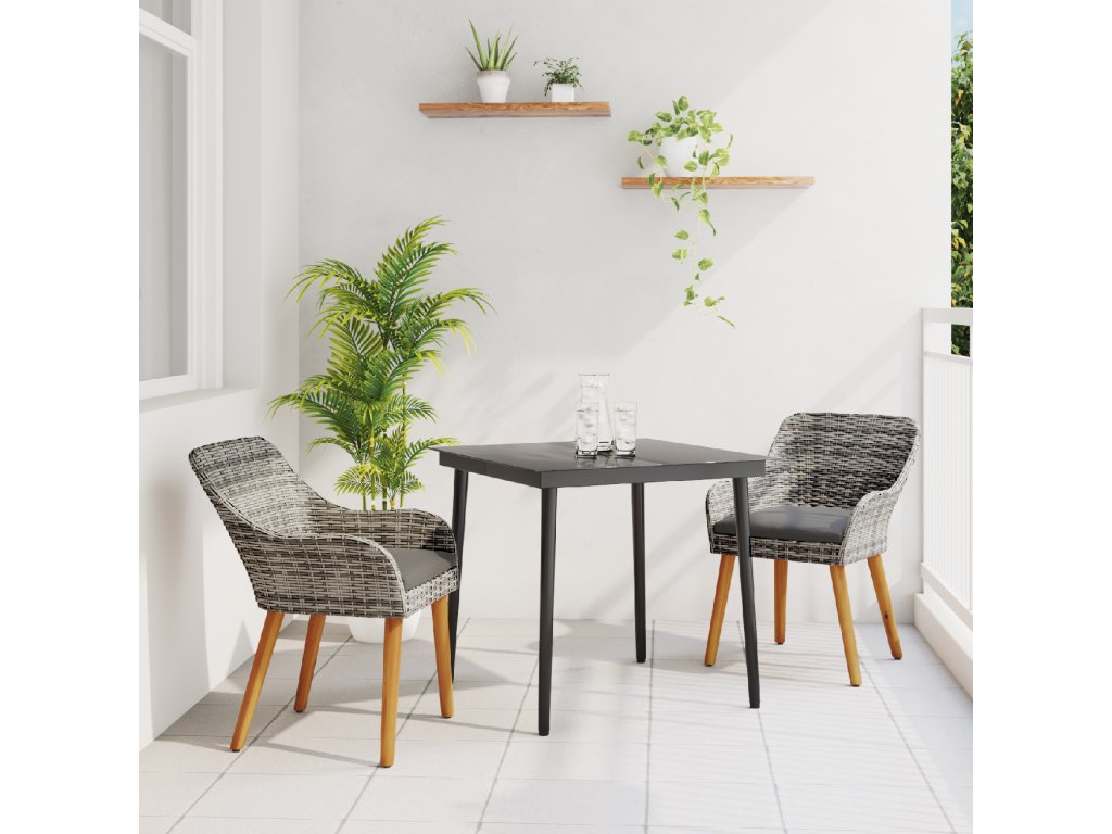 Odolné materiály: Díky kvalitnímu poly ratan a silný oceli, tato sada vydrží všechno, suitable for co počasí přinese po celý rok. Je navržená tak, aby odolávala dešti, UV paprskům a opotřebení, takže ji můžeš bez obav používat na venkovní akce. Můžeš se na ní spolehnout, že bude stabilní a bude vypadat skvěle i po mnoha posezení. UV-odolná kvalita: Tato sada má UV-odolné materiály, které ji udržují stále pěknou a silnou, brání vyblednutí na slunci. Takže vždycky bude vypadat skvěle a váš venkovní prostor zůstane čerstvej bez ohledu na roční období. Elegantní design stolu: Mrkni na skvělej patio stůl s elegantním skleněným povrchem. Snadno se čistí a vypadá skvěle, spojuje styl s praktičností, takže venkovní stolování je radost. Pohodlné sezení: Tato jídelní sada obsahuje příjemný polštáře na sezení, které mají praktické zipy, což dělá dlouhá jídla venku bezproblémový. Poly ratanový židle ne jenom dobře vypadají, ale taky jsou pohodlný, ideální na lenošení v letních dnech. Údržba a péče: Aby vaše sada zůstala v top stavu, používejte kryty, když není v provozu. To ji chrání před nepříznivým počasím a pomáhá jí dlouho vydržet. Navíc je snadná na údržbu, takže se můžeš soustředit na užívání si prostoru vaší zahrady.- Barva: Šedá