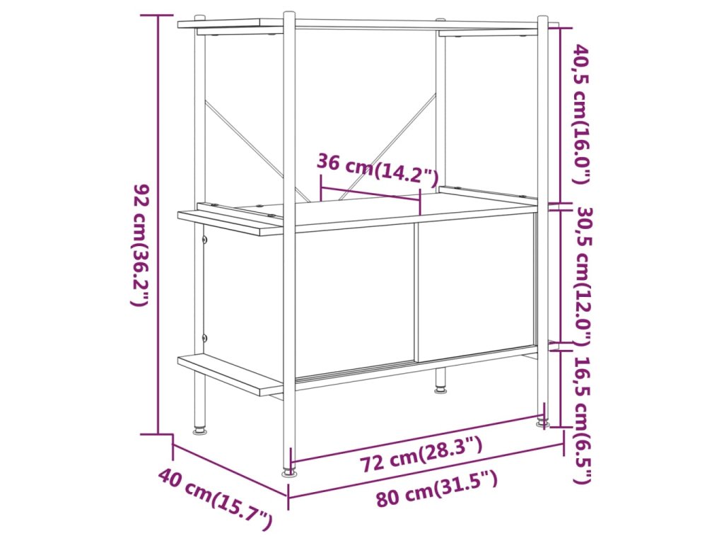 3 patrový policový regál se skříňkou 80x40x92cm ocel a kompozit