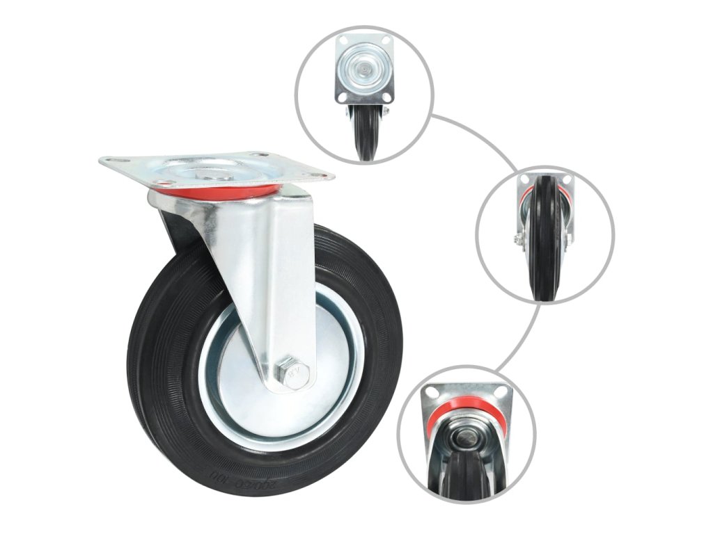 Kolečka jsou vyrobená z gumy, která je známá pro svou schopnost pohlcovat nárazy a vibrace. Ať už tedy kolečka namontujete na cokoliv, budete to moci přesouvat hladce a v tichosti. Jejich hladký povrch navíc ochrání vaši podlahu před poškrábáním. Zinkem potažený ocelový rám je odolný proti rzi, a tudíž kolečkům dodává na odolnosti a prodlužuje jejich životnost. Polovina těchto otočných koleček je vybavená dvojitou brzdou pro flexibilnější ovládání. Každé kolečko má maximální nosnost až 180 kg.