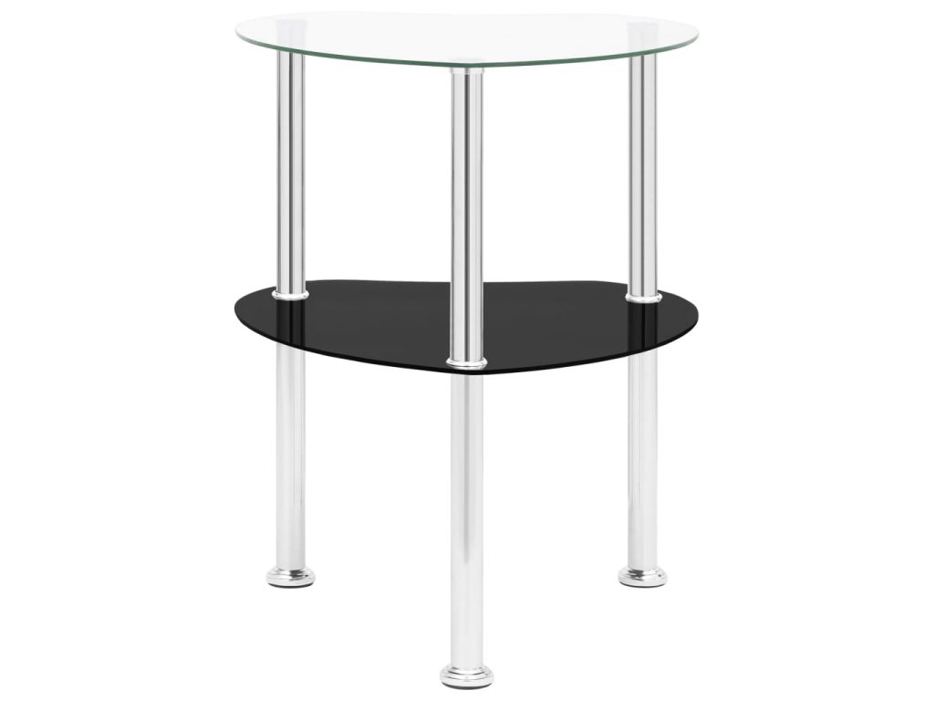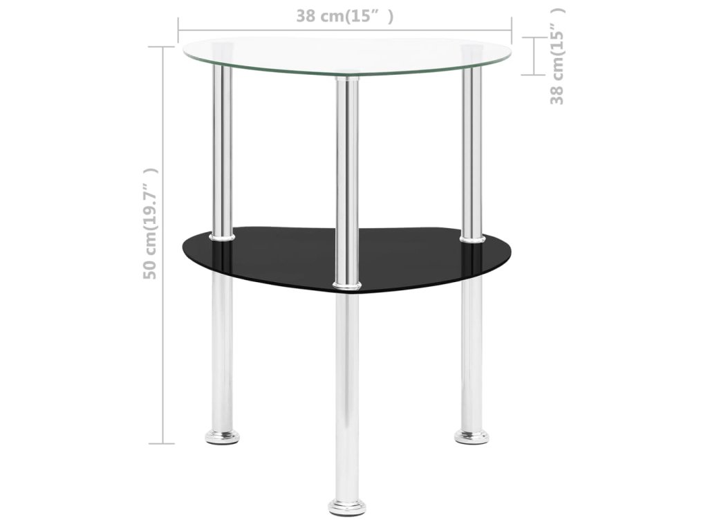 322786 vidaXL 2-Tier Side Table Transparent & Black 38x38x50cm Tempered Glass