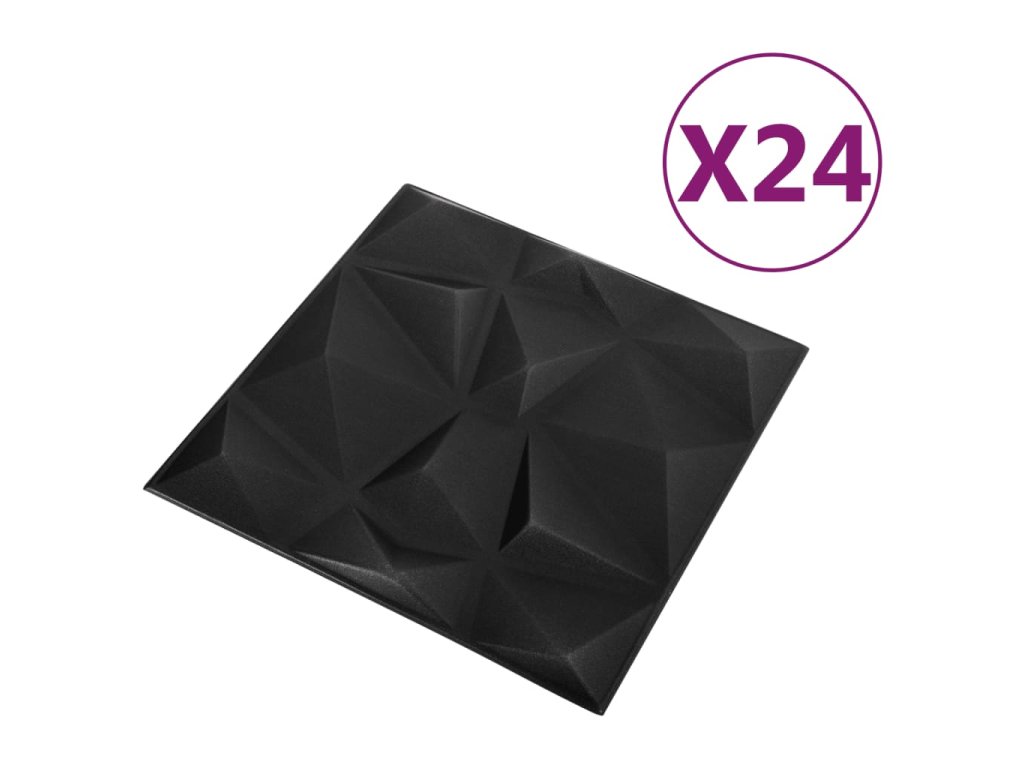 3D nástěnné panely 24 ks 50 x 50 cm diamant černé 6 m²