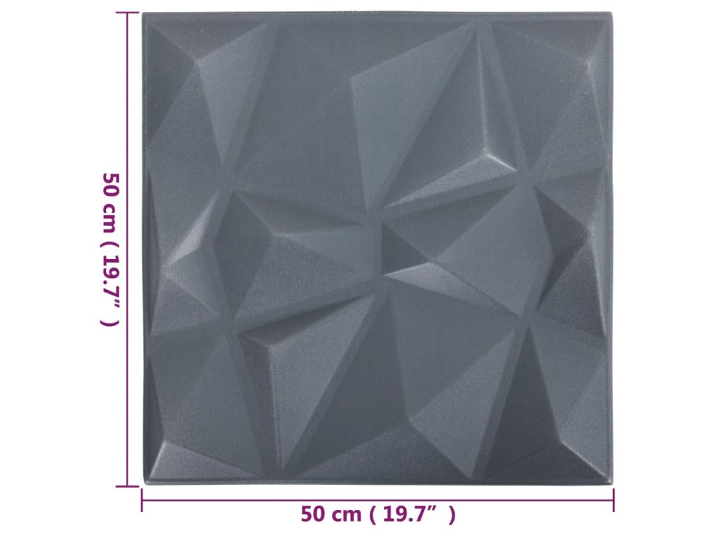 3D nástěnné panely 24 ks 50 x 50 cm diamant šedé 6 m²