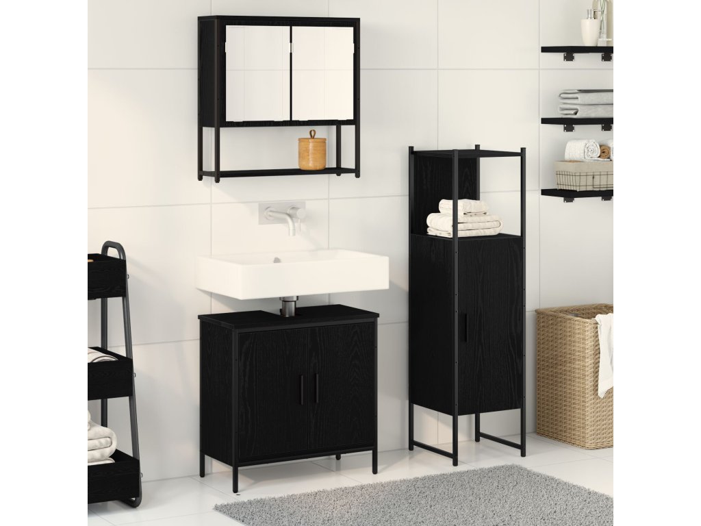 Sada koupelnového nábytku s policí 3 pcs Černá Kompozitní dřevo