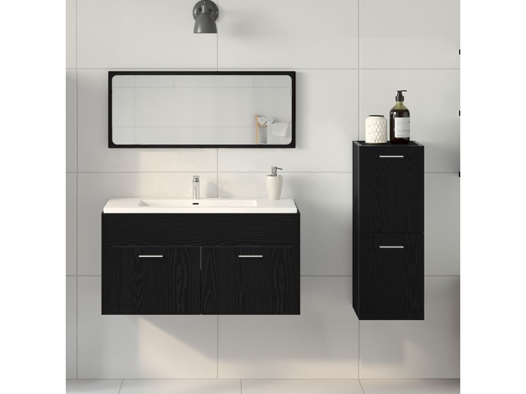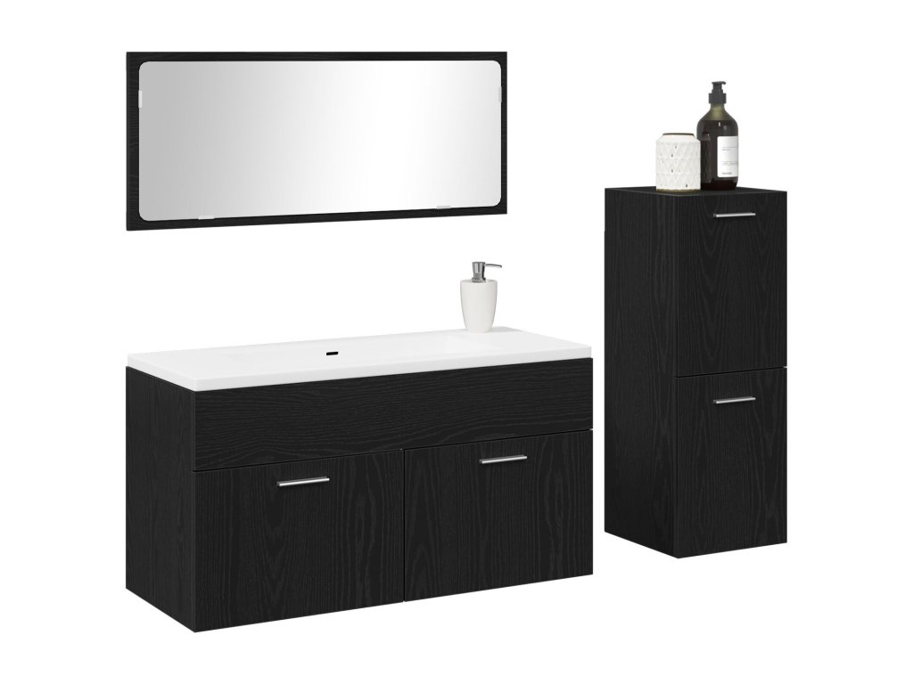 Sada koupelnového nábytku 3 pcs Černý dub kompozitní dřevo