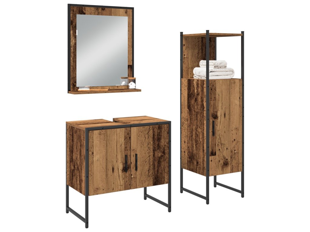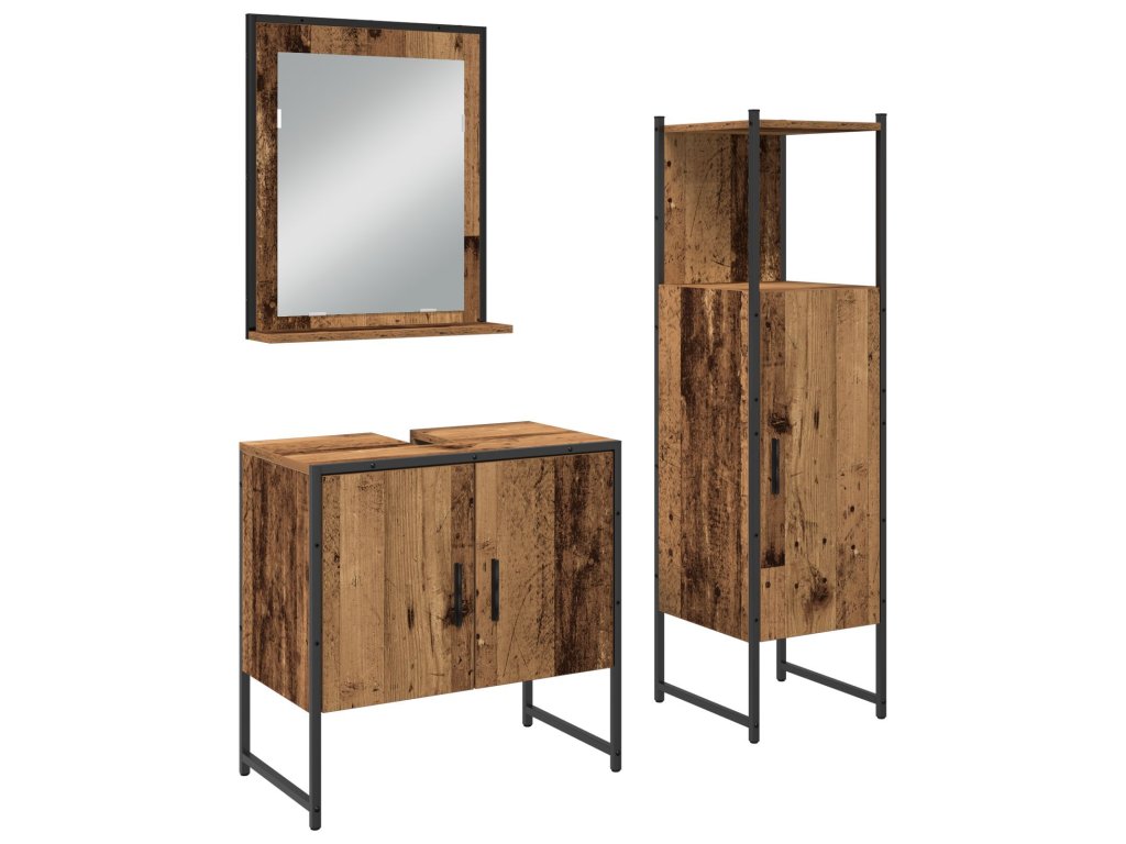 - Stavba z inženýrského dřeva: Nábytek je plně vyroben z inženýrského dřeva, které je pevné a odolné. Tento materiál spojuje styl s trvanlivostí, takže set vydrží každodenní používání a zůstane elegantní. Je odolný proti vlhkosti, ideální pro koupelny.